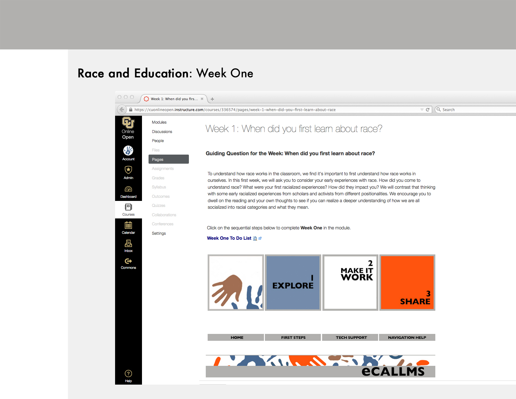 I had the opportunity to build several professional development courses for K-12 teachers on the Canvas LMS. This is an example of how I worked with content developed by faculty at the University of Colorado (the wonderful Dr. Cheryl Matias and Naomi Nishi) for the eCALLMS project. eCALLMS was a grant-funded project to help provide education for teachers of multilingual students.